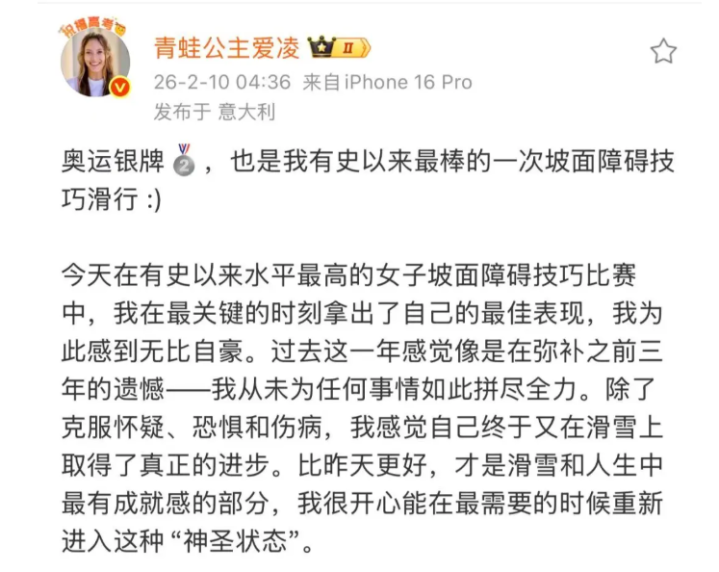 米兰冬奥会,谷爱凌又一次孝敬了实在完满的一跳,以86.58分锁定了亚军,获取一枚讲求的银牌